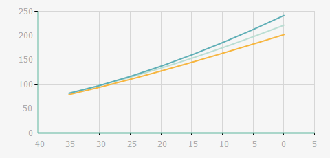 | 蒸發溫度 | 制冷量+/-5% | 能耗+/-5% | 現在能效+/-5% | 能效+/-7% | ||||