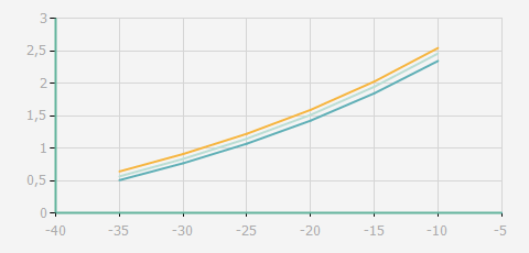 | 蒸發溫度 | 制冷量+/-5% | 能耗+/-5% | 現在能效+/-5% | 氣體流速+/-5% | 能效+/-7% | ||||